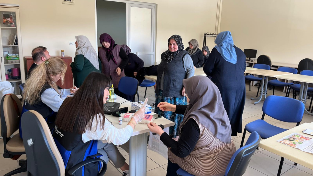 Yerinde sağlık hizmeti kapsamında vatandaşlara nabız, tansiyon, boy-kilo indeksi ve kan şekeri ölçümleri ücretsiz olarak yapılıyor.