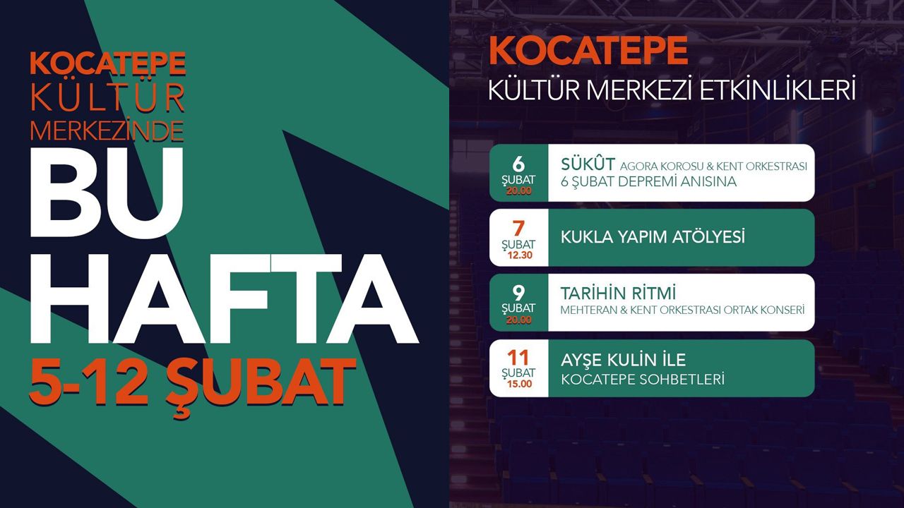5–12 Şubat tarihleri arasında Kocatepe Kültür Merkezi, farklı yaş gruplarına hitap eden kültür-sanat etkinliklerine ev sahipliği yapıyor.