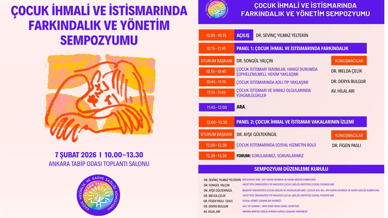 Ankara Tabip Odası Kadın Hekimlik ve Kadın Sağlığı Komisyonu tarafından organize edilen “Çocuk İhmali ve İstismarında Farkındalık ve Yönetim Sempozyumu”, çocuk güvenliği alanında çalışan profesyonelleri aynı platformda buluşturmayı hedefliyor.