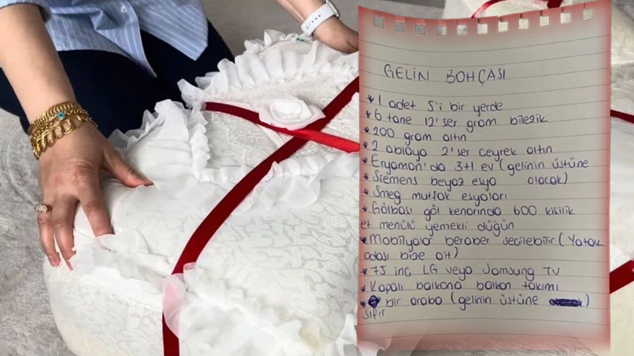“Gelin bohçası” başlığıyla hazırlanan listede, yüksek miktarda altın ve çeşitli maddi talepler yer aldı. Listede 100 gram altın, çok sayıda bilezik ve aile bireylerine verilmesi planlanan ziynet eşyaları dikkat çekti.