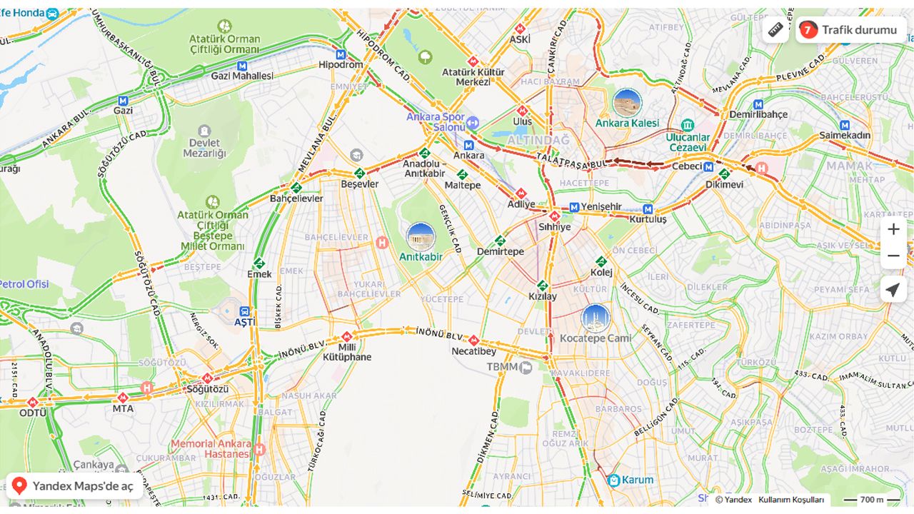 Mevcut durum hem işe gidiş-geliş saatlerinde zaman kaybı yaşanmaması hem de toplu taşıma ve alternatif güzergâhların tercih edilmesi açısından önem taşıyor. Ankara Büyükşehir Belediyesi’nin resmi trafik haritası sürücülerin yola çıkmadan önce güzergâh planlaması yapmasına yardımcı oluyor.