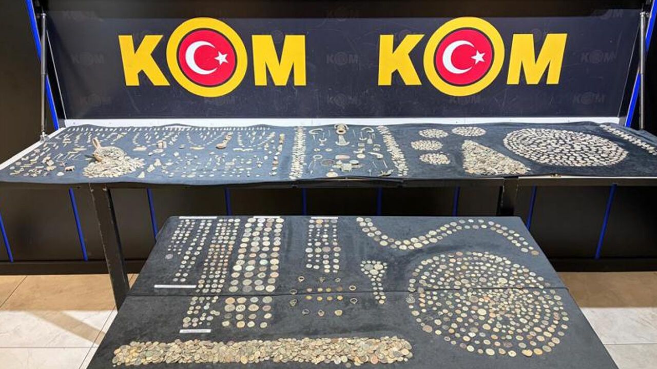Ele geçirilenler arasında 6 bin 24 adet bronz ve gümüş sikke ile 358 farklı tarihi obje yer aldı. Ayrıca define aramada kullanılan dedektör de bulundu.