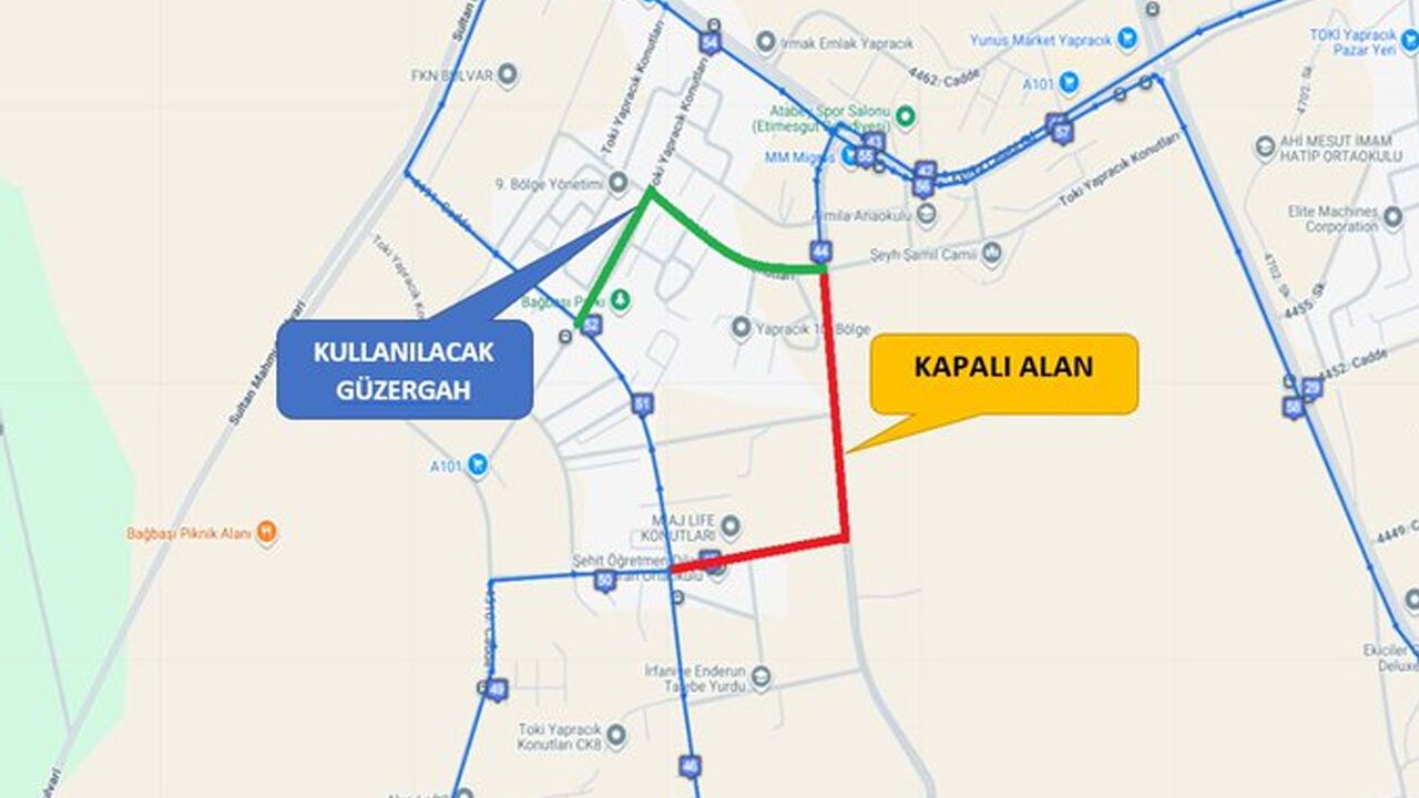 EGO, ulaşımın aksamaması için alternatif güzergahı da paylaştı.
