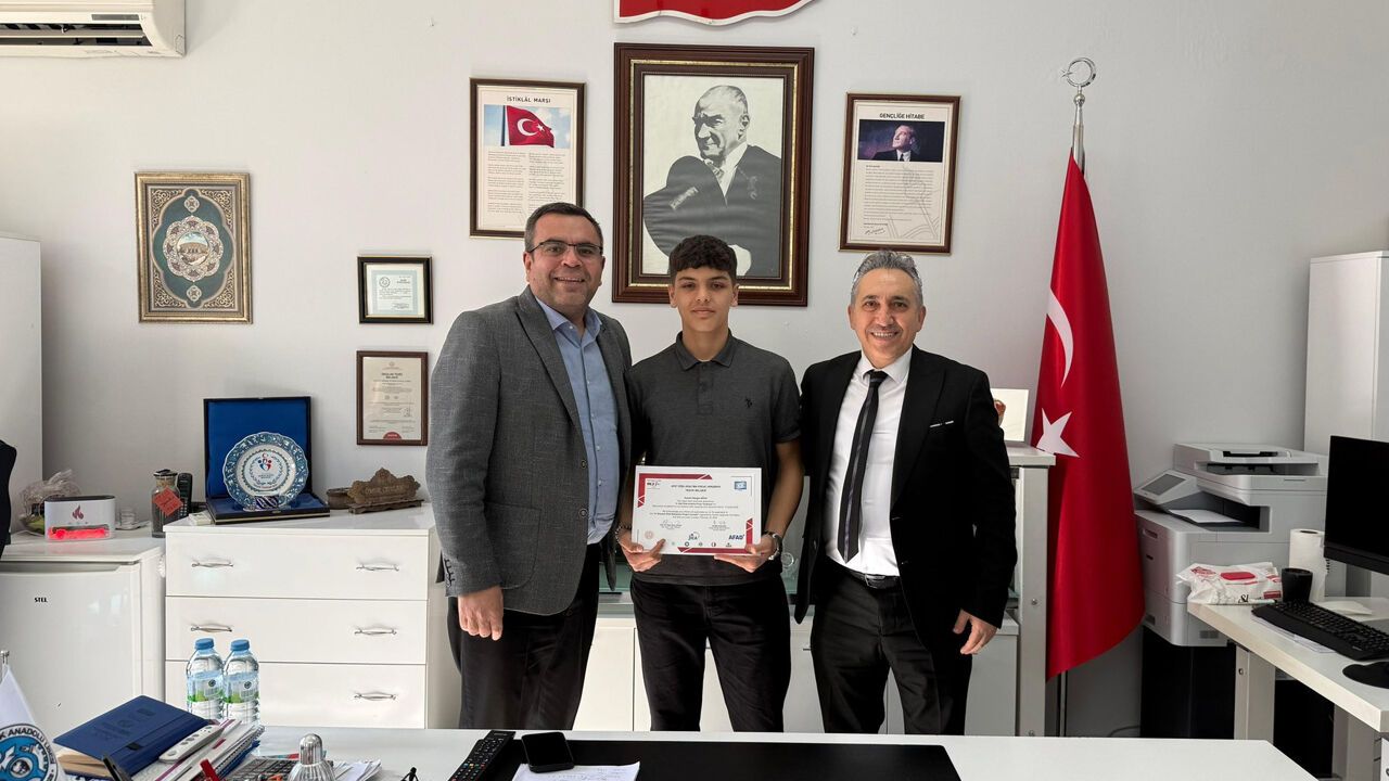 “Afet Avcıları: Okulda Risk Peşinde” adlı proje ile lise kategorisinde yarışmaya katılan öğrenci Türkiye genelinden yapılan 102 başvuru arasından ödül alan 5 projeden biri oldu.