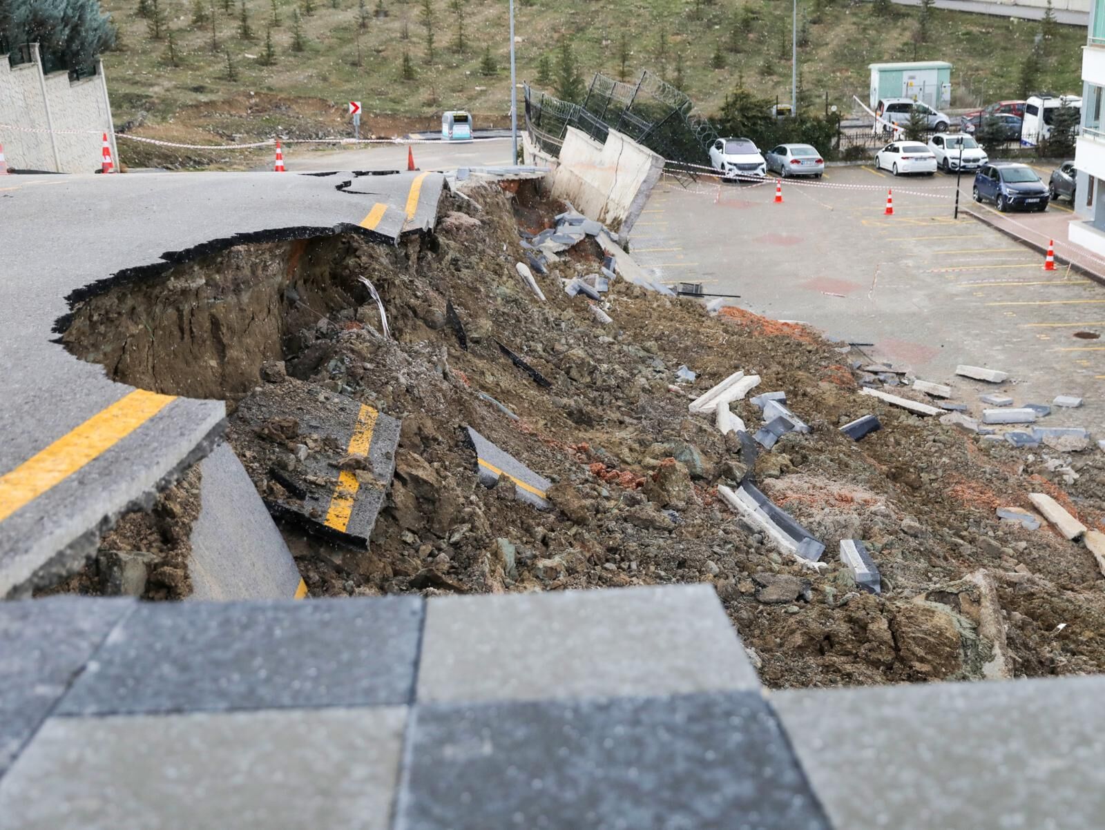 Olayın ardından bölge güvenlik şeritleri ve dubalarla kapatılarak araç ve yaya geçişine karşı gerekli tedbirler alındı. Çökme nedeniyle asfalt zeminde derin çatlaklar oluştuğu, kaldırım hattında kırılmalar meydana geldiği ve bazı beton parçalarının yer değiştirdiği tespit edildi.