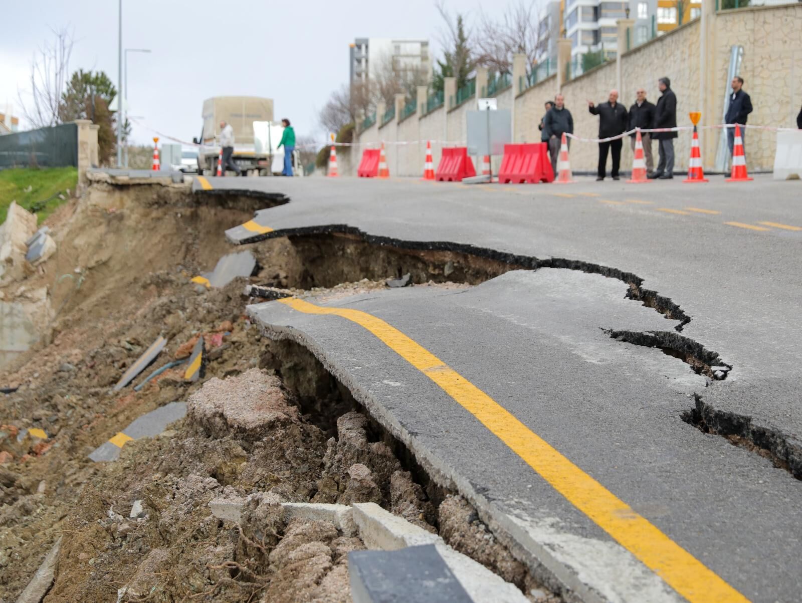 Yapılan ilk tespitlere göre yolun belirli bir bölümünde asfalt tabakasının yarılarak çöktüğü, kaldırım ve bordür taşlarının yerinden ayrıldığı, istinat duvarında hasar oluştuğu ve yol kenarındaki toprak zeminin kayarak alt kısımdaki alana doğru ilerlediği belirlendi.