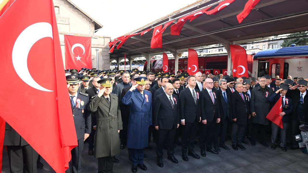 Anma programı kapsamında Balıkesir Garı’na ulaşan ve temsili olarak gazileri taşıyan tren karşılandı. İsmail Ustaoğlu, trenle getirilen Türk Bayrağı’nı gazilerden teslim aldı. Törende saygı duruşunda bulunuldu, İstiklal Marşı okundu.
