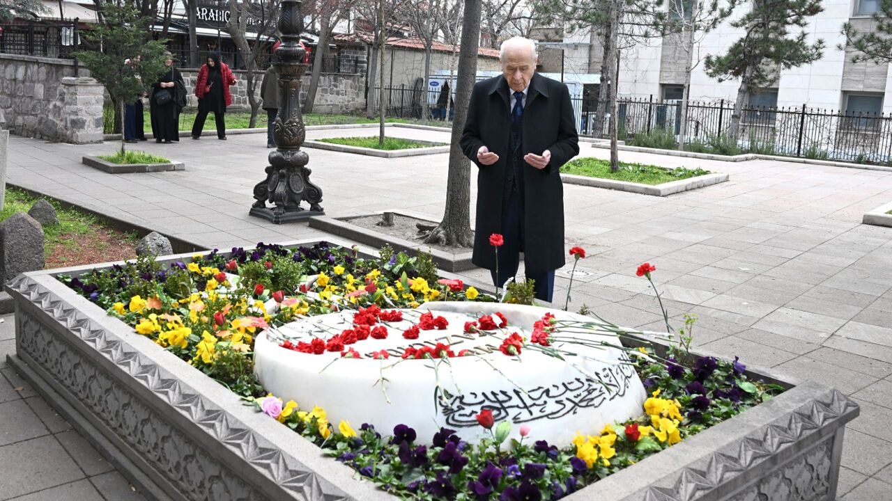 Milliyetçi Hareket Partisi tarafından paylaşılan açıklamada Bahçeli’nin kabir başında dua ettiği ve merhum lideri andığı ifade edildi. Açıklamada ayrıca Yazıcıoğlu için rahmet dileğinde bulunularak ailesine ve dava arkadaşlarına sabır temennisinde yer verildi.