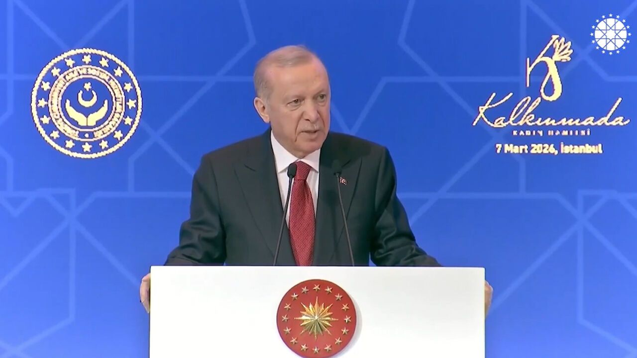 Erdoğan, Gazze’den Suriye’ye, Yemen’den Sudan’a kadar birçok bölgede acı yaşayan kadınlara Türkiye’den selam göndererek şu ifadeleri kullandı:“Gazze’den Suriye’ye, Yemen’den Sudan’a gönül ve kültür coğrafyamızın farklı köşelerindeki acılı annelerin, acılı eşlerin 8 Mart Dünya Kadınlar Günü’nü tebrik ediyor, kendilerini buradan hürmetle selamlıyorum.”