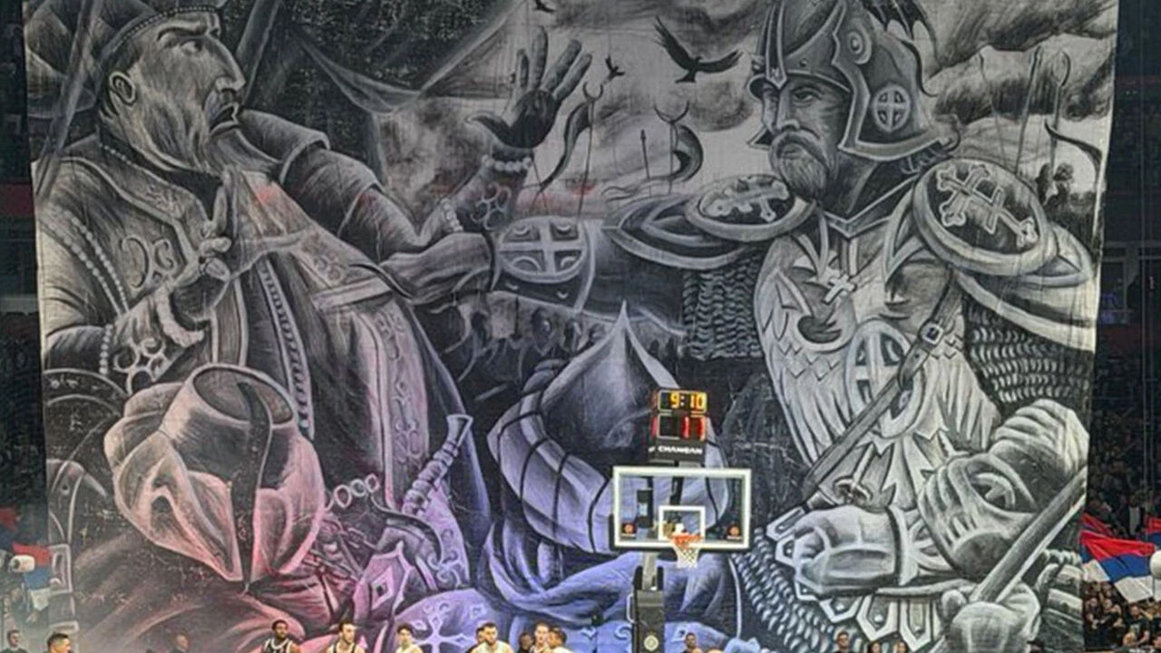 Sırp taraftarların açtığı dev koreografide, 1389’daki Kosova Savaşı’na gönderme yapılarak Osmanlı padişahı I. Murad’ın Sırp şövalye Miloš Obilić tarafından öldürülmesi tasvir edilmişti. Görselde tarihî bir sahne dramatize edilerek yansıtılmış, buna eşlik eden Türk karşıtı sloganlar da tribünlerden yükselmişti.