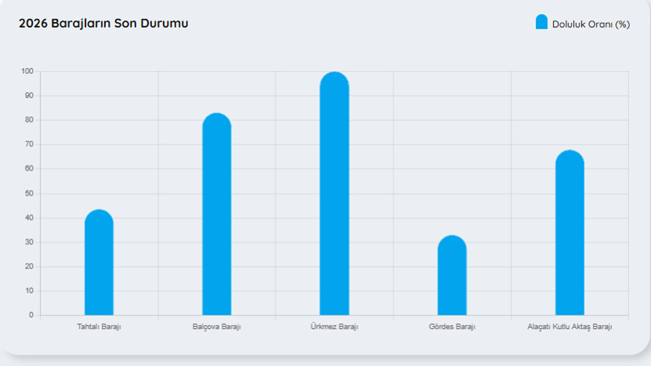 Öte yandan Gördes Barajı’nda doluluk oranı yüzde 33,02 olarak ölçüldü. Bu oran, diğer barajlara kıyasla düşük seviyede kalırken, su yönetimi açısından dikkatle takip edilmesi gereken noktalar arasında gösteriliyor.