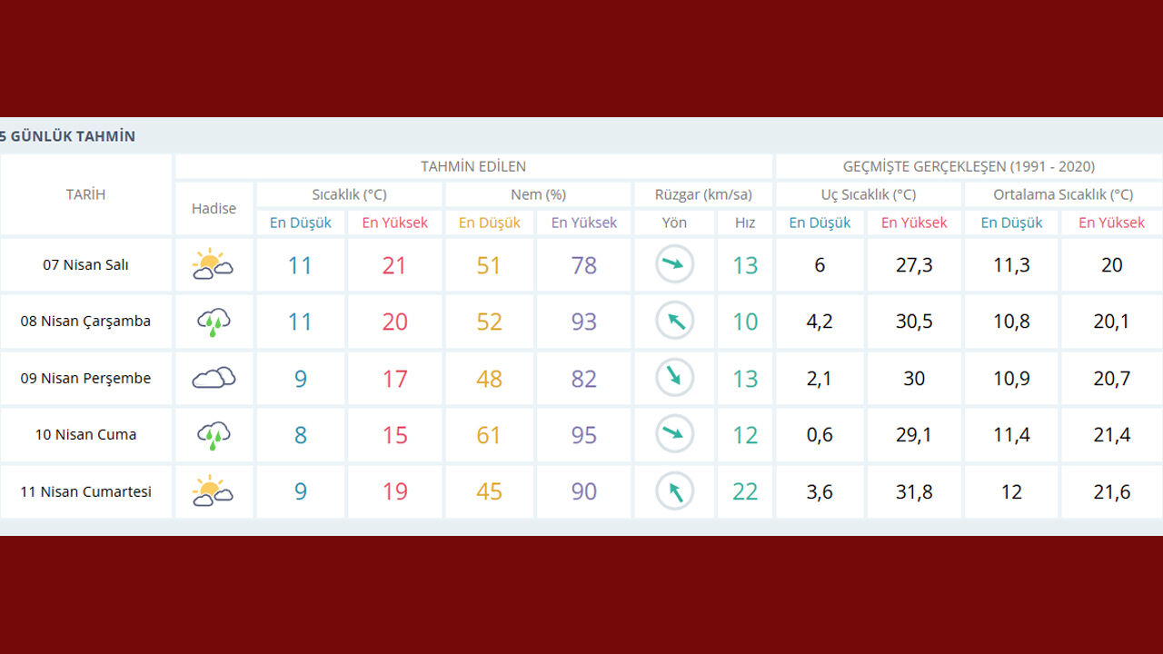 Çarşamba günüyle birlikte sağanak yağışların kente geri dönmesi beklenirken, sıcaklıklar 19 derece civarında olacak. Yağışlı sistemin hafta boyunca etkisini sürdürmesi öngörülüyor.