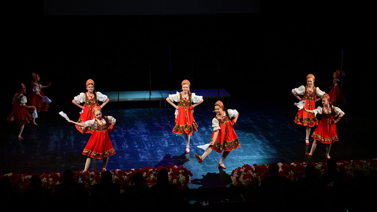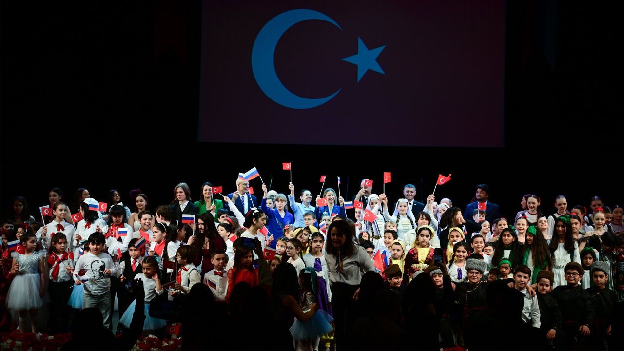 Türk, Rus, Azerbaycanlı, Pakistanlı ve Rusya’da yaşayan Ahıska Türkü çocuklar, kendi kültürlerine ait milli kıyafetlerle sahneye çıkarak geleneksel dans gösterileri sundu.