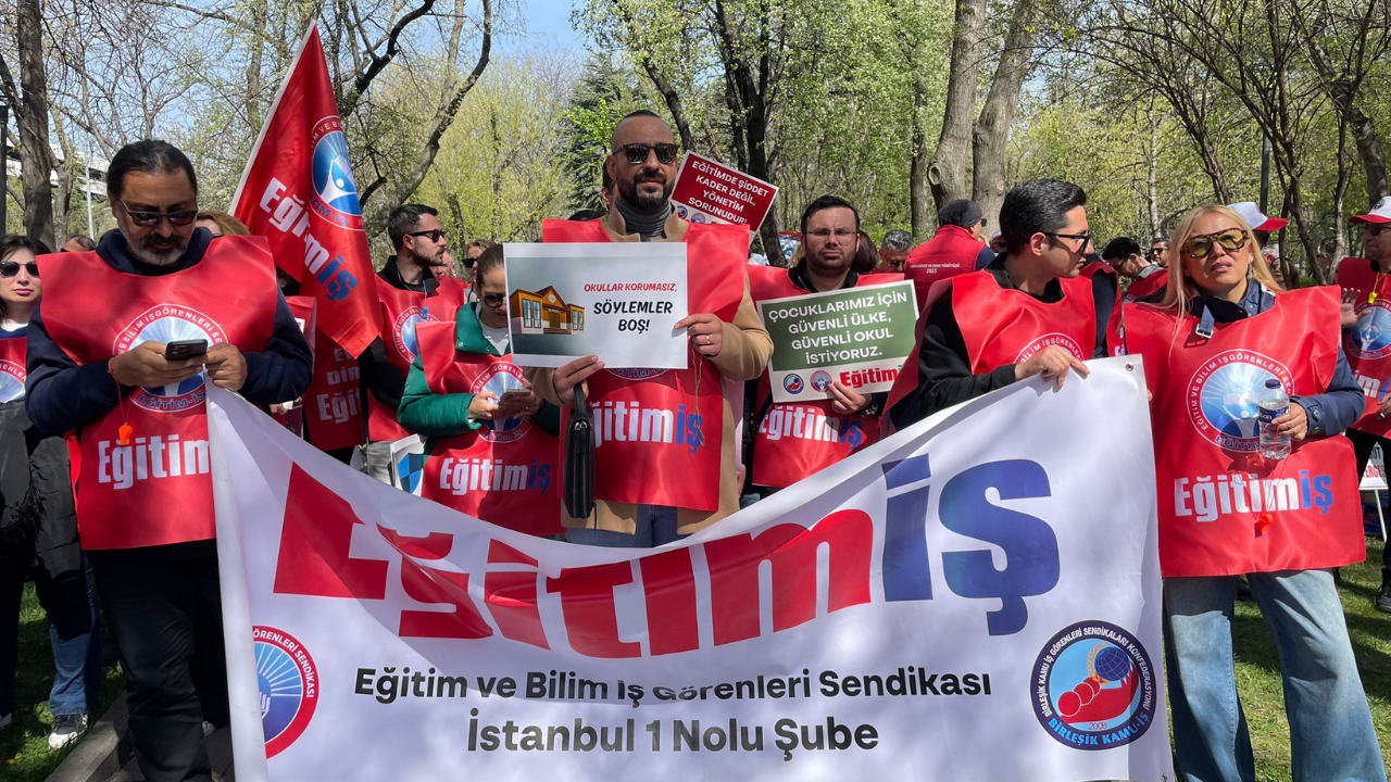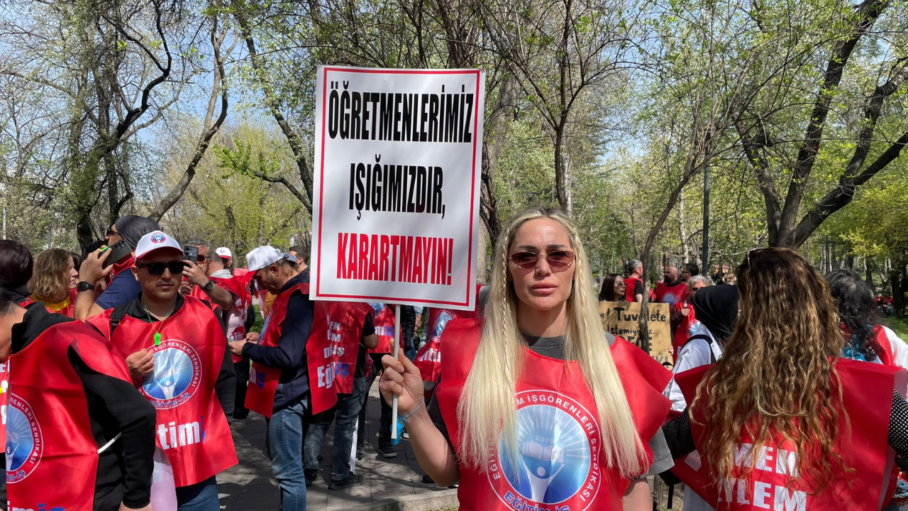 Ankara’da öğretmenler, eğitimde artan şiddet olaylarına karşı Kurtuluş Parkı’nda eylem düzenledi. Çok sayıda öğretmenin katıldığı protestoda “Okullarda şiddet istemiyoruz”, “Öğretmene uzanan eller kırılsın”, “Yusuf Tekin istifa” ve “Artık yeter” sloganları atıldı.