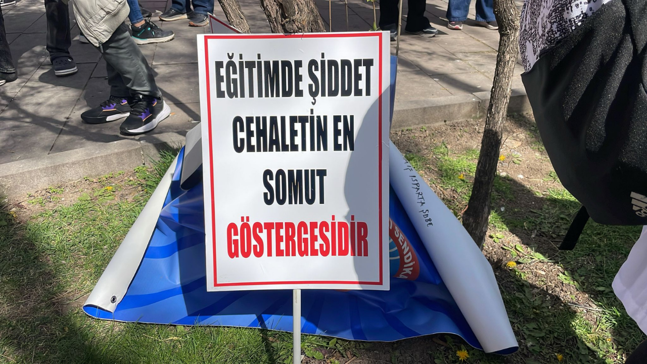 “Eğitimde şiddet cehaletin en somut göstergesidir” pankartı dikkat çeken sloganlar arasında yer aldı.