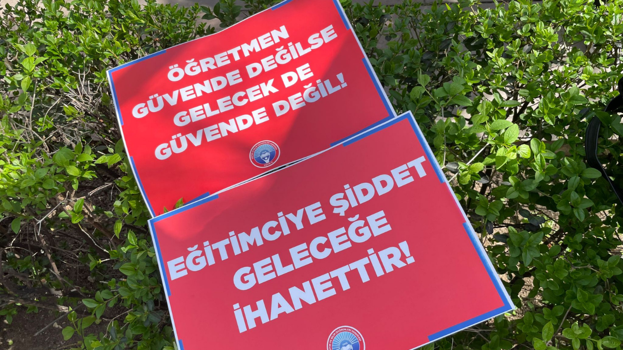 “Eğitimciye şiddet geleceğe ihanettir” yazılı pankart protestonun ana vurgularından biri oldu.