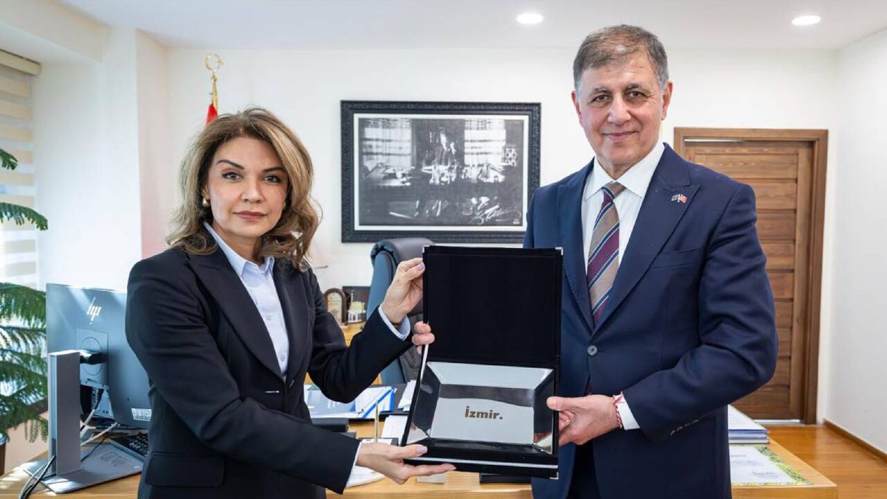 İzmir Büyükşehir Belediye Başkanı Dr. Cemil Tugay, Azerbaycan’ın İstanbul Başkonsolosu Narmina Mustafayeva ile konsoloslar Zaur Allahverdi-zada ve Sevinc Süleymanova’yı makamında konuk etti. Ziyarette İzmir Büyükşehir Belediyesi Genel Sekreter Yardımcısı Övünç Özgen ve belediye bürokratları da hazır bulundu.