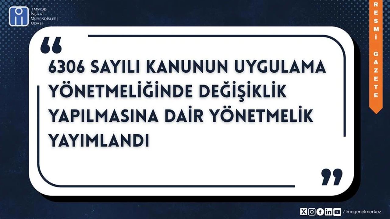 Kentsel dönüşüm uygulamalarını doğrudan ilgilendiren 6306 Sayılı Kanunun Uygulama Yönetmeliğinde Değişiklik Yapılmasına Dair Yönetmelik, Resmî Gazete’nin 4 Şubat 2026 tarihli ve 33158 sayısında yayımlanarak yürürlüğe girdi. Düzenleme, özellikle riskli yapılarla ilgili uygulamalarda yaşanan belirsizlikleri gidermeyi hedefliyor.
