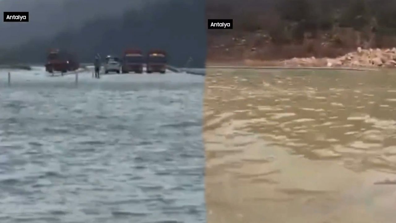 Antalya ile Konya’yı birbirine bağlayan kara yolu, etkisini artıran sağanak yağışın ardından sel sularıyla kaplandı. Yolun bazı kesimlerinde su seviyesi yükselirken, araç geçişleri kontrollü şekilde sağlanmaya çalışılıyor.