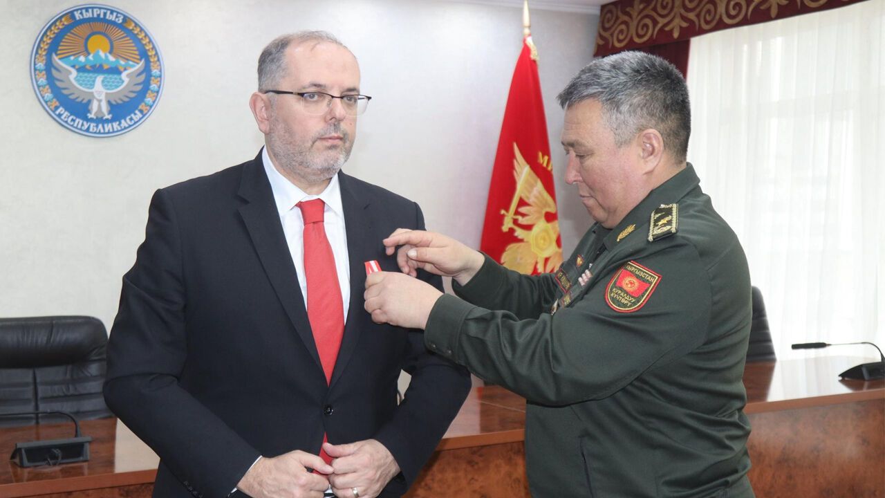Kırgız Cumhuriyeti Savunma Bakanı Ruslan Mustafaeviç Mukambetov tarafından takdim edilen “Askeri İş Birliğinin Geliştirilmesi” madalyasının, iki ülke arasındaki askeri eğitim ilişkilerine sağlanan katkılar nedeniyle verildiği bildirildi.