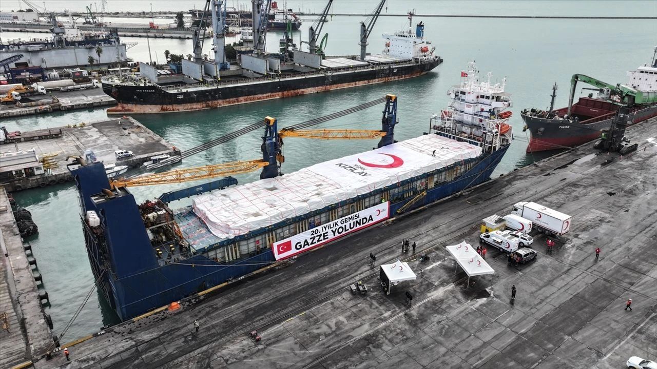 Gazze’de temel insani ihtiyaçların karşılanmasına yönelik yardım çalışmaları, Türkiye’nin öncülüğünde aralıksız sürüyor. Bu kapsamda Türk Kızılay tarafından hazırlanan, gıda, hijyen, giyim, battaniye, barınma ve bebek malzemelerinden oluşan yaklaşık 1.400 tonluk insani yardım yüklü 20’nci “İyilik Gemisi”, Mersin Uluslararası Limanı’ndan Gazze’ye uğurlandı.