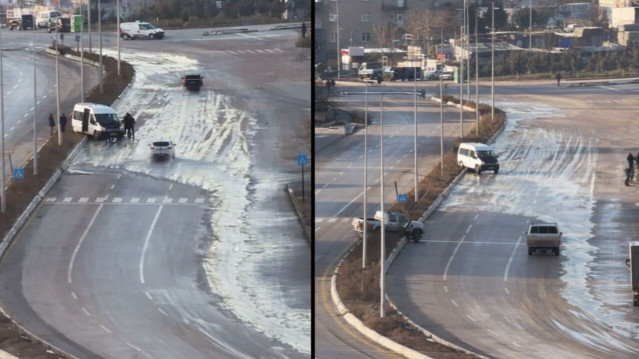 Araçların kontrol kaybı yaşadığı anlar kameralara yansırken, aynı bölgede peş peşe kazaların meydana geldiği ifade ediliyor.